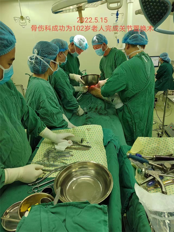 患者程xx(化名),102岁,因在家坐板凳时不小心摔伤致右髋部肿痛、畸形、功能障碍1天。于我院就诊,门诊行DR片示右侧股骨颈骨折,遂入院行手术治疗。 【详情】