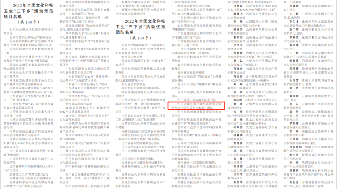 中央宣传部近日下发通知,公布2022年全国文化科技卫生“三下乡”活动示范项目、优秀团队、服务标兵名单。其中,我院中医药适宜技术推广团队上榜! 【详情】