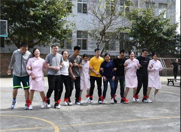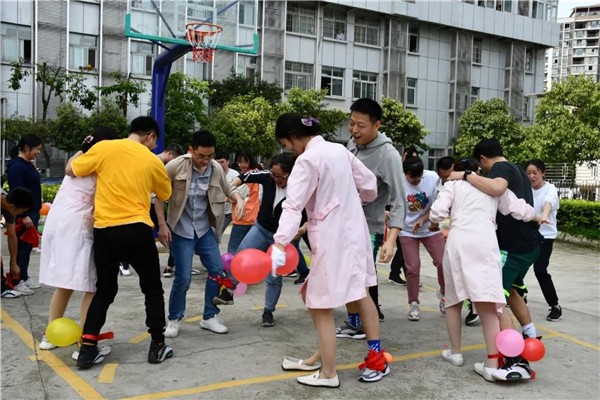 接着开始的是两人三足走、踩气球等融趣味性和竞技性于一体的比赛项目,让在场观众身心愉悦的同时,也让平日里辛勤忙碌的白衣天使们一扫疲惫和烦恼,为了团队的目标及荣誉,大家密切配合,互助友爱,一幕幕嬉笑颜开、欢呼雀跃、青春洋溢的轻松场面布满了整个赛场。最终,由行政后勤支部队取得了两人三足走及踩气球比赛的冠军。