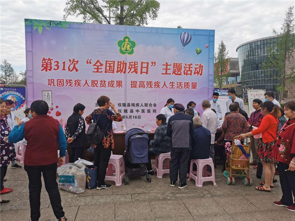 今年是第三十一个全国助残日,今年主题是“巩固残疾人脱贫成果,提高残疾人生活质量”。在全国助残日来临之际,为了提高对社会残疾群众的关注程度,积极营造扶残助残的良好社会氛围。5月16日,由仪陇县残联主办,我院承办的全国助残日活动在县德园广场举办。县残联副理事长邓劲松,医院副院长程鑫以及残联康复股股长李伟,医院针灸康复科主任袁平、护士长吴帆,公共事务部段淼及医院相关人员参加活动。