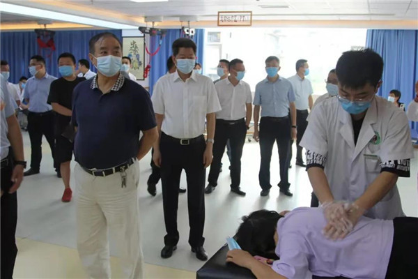 调研一行人员现场听取了院长彭建对医院整体情况的介绍,随后参观了我院针灸康复科、放射科、超声科、名中医工作室,随行副院长董勤建就我院医疗设备使用情况及设备现状做具体介绍。