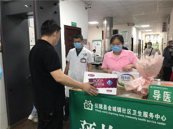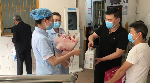 唐局长与护士代表一一握手,并感谢他们在新冠肺炎中的辛苦付出与担当,随后向她们送上鲜花、果篮及节日的祝福。