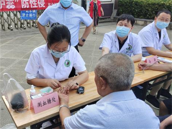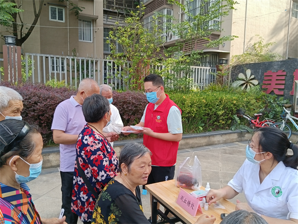 16日上午,医院行政后勤支部、新政镇东北社区支部党员及志愿者与医护人员们,携带血糖检测仪、血压计、耳穴埋豆、艾灸盒等诊疗设备,防暑药品等来到社区,将“健康”送到居民家门口,打通服务百姓健康“最后一公里”。
