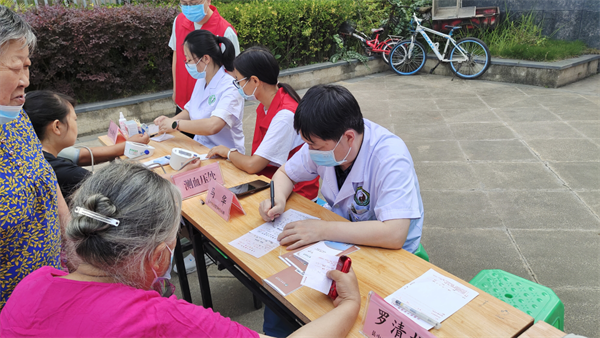 义诊中,医务人员还围绕颈椎病、肩周炎、腰痛、关节炎、高血压、高血糖、眼部疾病、肠胃等疾病进行了中医防治讲解,普及中医基本知识和自我保健能力,增强了居民的健康意识,促使他们自觉采纳有益于健康的饮食,不断增强体质,提高生活质量。闻讯而来的居民络绎不绝。在家门口就能享受优质的中医药诊疗服务,这让居民群众无比开心。此次活动免费义诊100余人次,测量血压、血糖126人次,发放防暑降温药品50余份,各类宣传资料500余份。