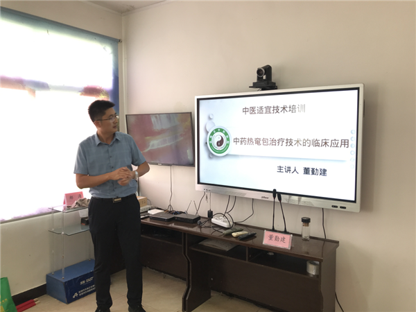 医院董勤建、郑涛2位专家,分别以《中药热奄包治疗技术的临床应用》《咳嗽的中医治疗》为题做专题讲座。