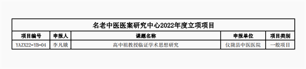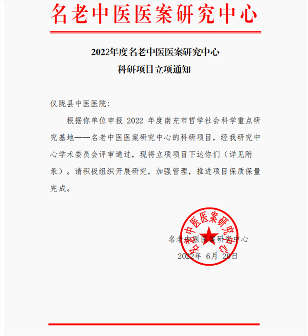 日前,南充市哲学社会科学重点研究基地——名老中医医案研究中心公布的2022 年度科研项目,仪陇县中医医院李凡娥主治中医师负责的科研课题上榜!