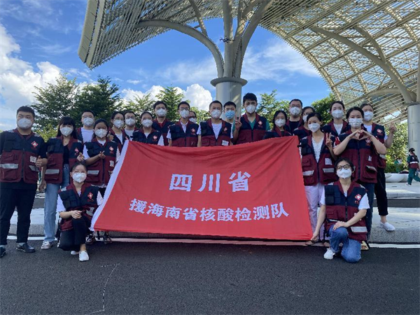 会上,援琼核酸检测队队长李放代表队伍作援琼工作汇报,他表示:“抗击疫情、救死扶伤是每一位医务人员的职责,我们5名援海队员与川北医学院核酸检测队奋战26天,秉持“精益求精,高度负责”的工作作风,共完成标本核酸检测135万管,以‘零’差错,‘零’失误,‘零’感染圆满完成了援琼核酸检测任务。在‘战场’上,我们能够感受到各级领导和同事亲朋的关心关爱,为我们解除后顾之忧。外出支援是难忘的经历,也是一次深刻的党性锻炼。”