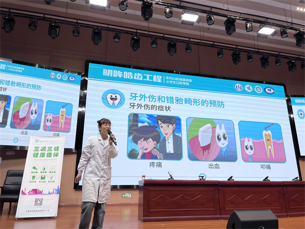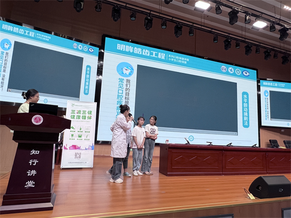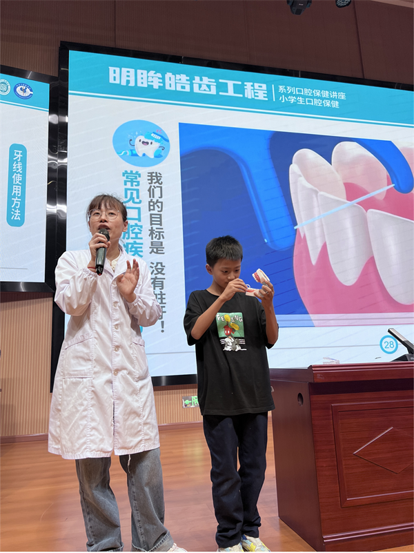 讲座过程中,对口帮扶我院的温州市龙湾区第一人民医院夏益枫副主任医师通过爱牙护牙课件、互动、答疑解惑等授课形式,全方位地向孩子们介绍了小学生常见的口腔疾病,包括龋病的病因及预防、牙菌斑的危害、牙龈炎的病因及预防、牙外伤的处理方法和预防、错牙和畸形的原因及防治等,并重点指导孩子们如何正确刷牙、使用牙线、合理饮食,树立正确的自我口腔保健意识。